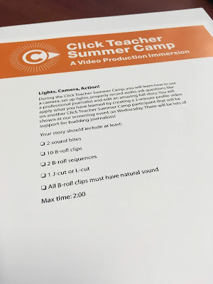 You know a good PD session when you see it, and this one knocked it out of the park by first beginning with relationships!  We all had an opportunity to introduce who we were, where we are from, and where we use video production in our roles.  From there we were given an image.  It turns out that image matched us with our production partner.  Cameras matched with lenses and lights matched with light stands.  From there we were required to make sure that we had a camera, lens, light, and light stand together and those would be our teams for the duration of the camp.  The focus from the time we arrived on campus through lunch was RELATIONSHIPS.  They shared a bit of information but really they provided us a bunch of time to get to know one another.  One of the strategies, besides the cards that helped us find our partners was a "Two Truths and a Wish" activity that we did in teams of four that really helped continue to build relationships and support one another.  I enjoyed the opportunity to get to know Tom (informally) during lunch to help me begin to formulate interview questions for the piece that I would be creating.